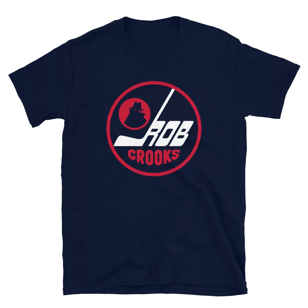 Rob Crooks, Winnipeg Jets inspired design by 319 Heads. Printed on a Navy unisex Gildan Softstyle tee.